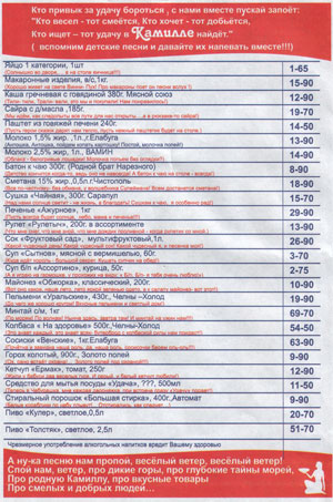 Как известно, самые идиотские рекламные "креативы" рождаются именно в стихотворной форме. Достаточно вспомнить шедевральное "Гаишник ждет под елочкой, а качество в "Пятерочке". Однако нижеследующая контора, по-моему, всех переплюнула. Они предложили вспомнить детские песни (причем их совершенно кошмарно перевирают), а к ним дописывают рекламу продаваемых продуктов. Получается это настолько по-дебильному, что даже заслуживает пристального изучения. Вот полный спектр их потрясающего творчества (по превьюшке нужно щелкнуть - откроется в большом размере в отдельном окне).