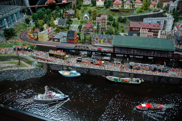 На макете также представлен довольно большой кусок Гамбурга. Очень забавно наблюдать склады , которые проезжал десять минут назад.