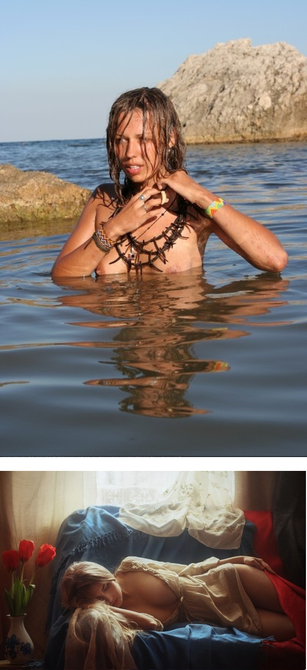 Поражает томная нега, которую излучают глаза лежащей обнажённой. Впрочем, глаза на поверку оказываются не менее выразительными грудями.