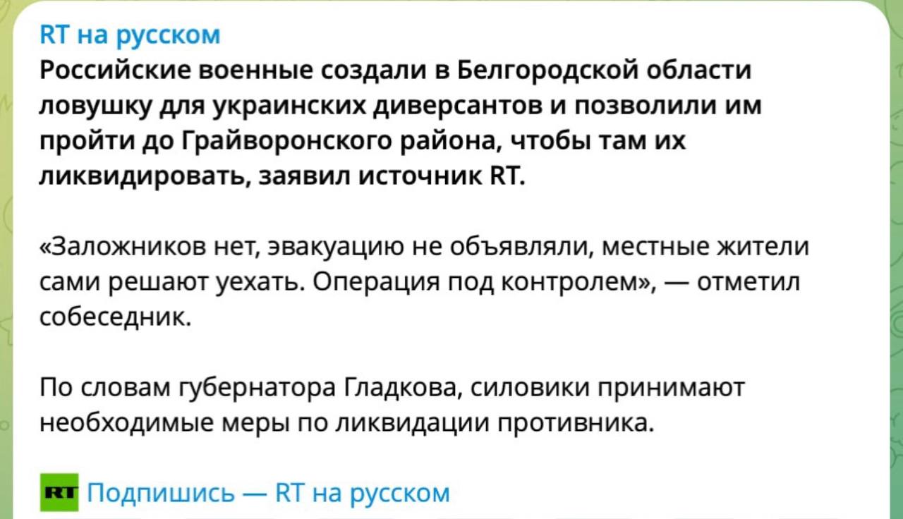 Нет, это чисто внутренняя проблема - стихийно возникшая самооборона Белгородской Народной Республики из числа неравнодушных граждан и отпускников ЛСР и РДК, танки и оружие из-за безответственной политики российских властей уже давно можно купить в любом военторге.