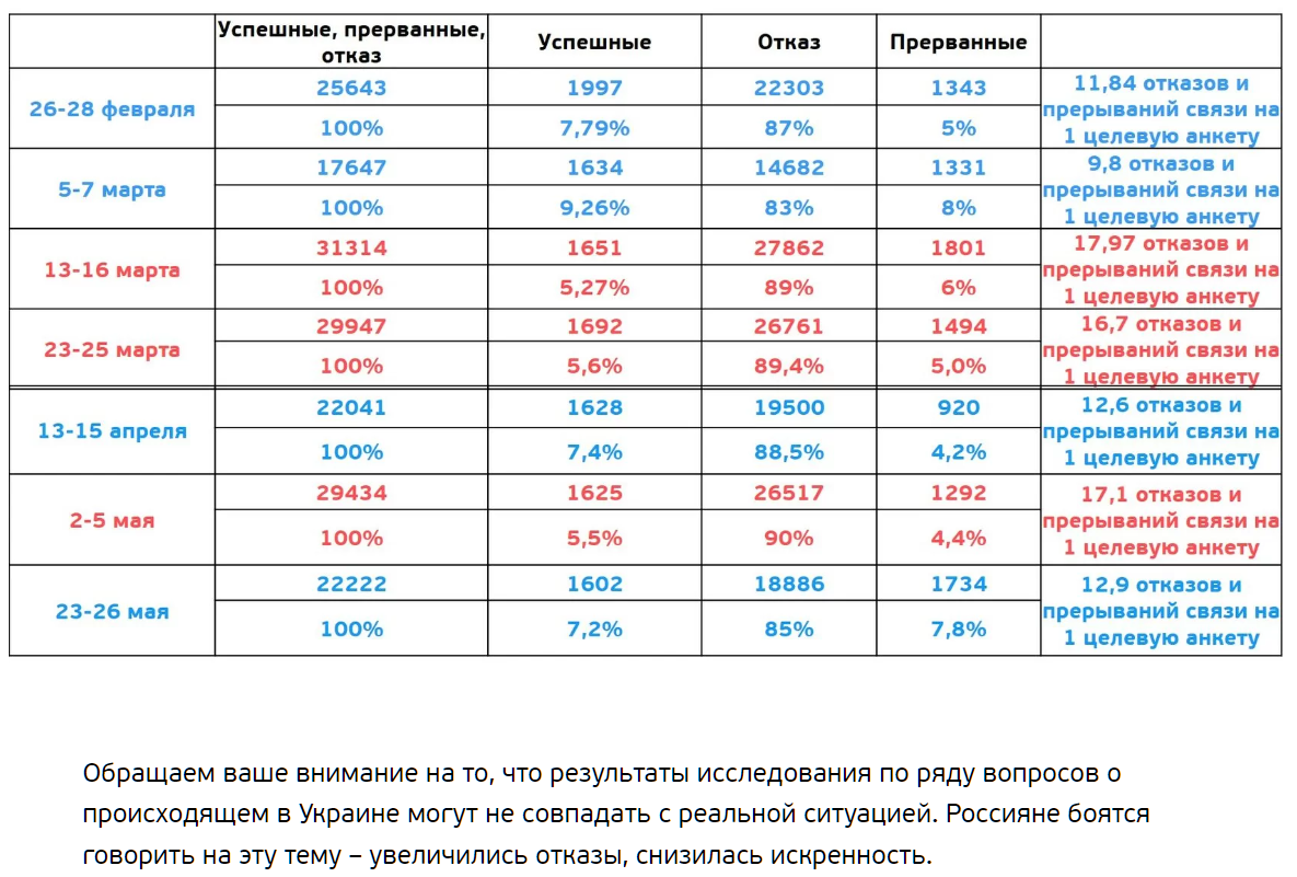 В текущих условиях "за неправильный ответ можно и срок схлопотать" те, кто против войны, просто не будут участвовать в опросах.