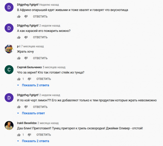Обожаю читать комменты к видеорецептам Джейми Оливера - это всемирно известный кулинар. Комменты там всегда делают мой день.