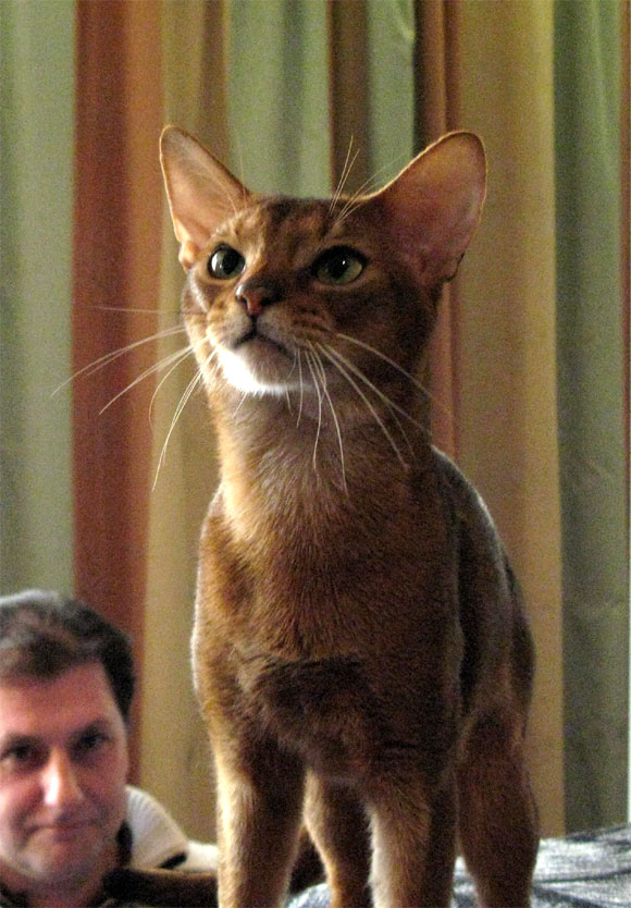 Эка коша. В смысле аби. Мы неделю назад как раз девченку-абиссинку приобрели. Хорошенькая такая. На наш вкус, а то мы не спецы в этом деле. От всей родни в корзинке отличалась окрасом диким и тем что была спокойная. Здоровская животина, умная, забавная. Полюбили уже как дитё.