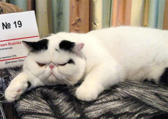 В очередной раз был в жюри конкурса "Кубок чемпионов". Это когда выставляются только чемпионы известных выставок, а судят их, за редкими исключениями, не профессиональные кошачьи судьи, а всякие известные люди. Победители получают всякие неплохие призы: автомобиль (главный приз), телевизоры, магнитофоны, всякую технику.
