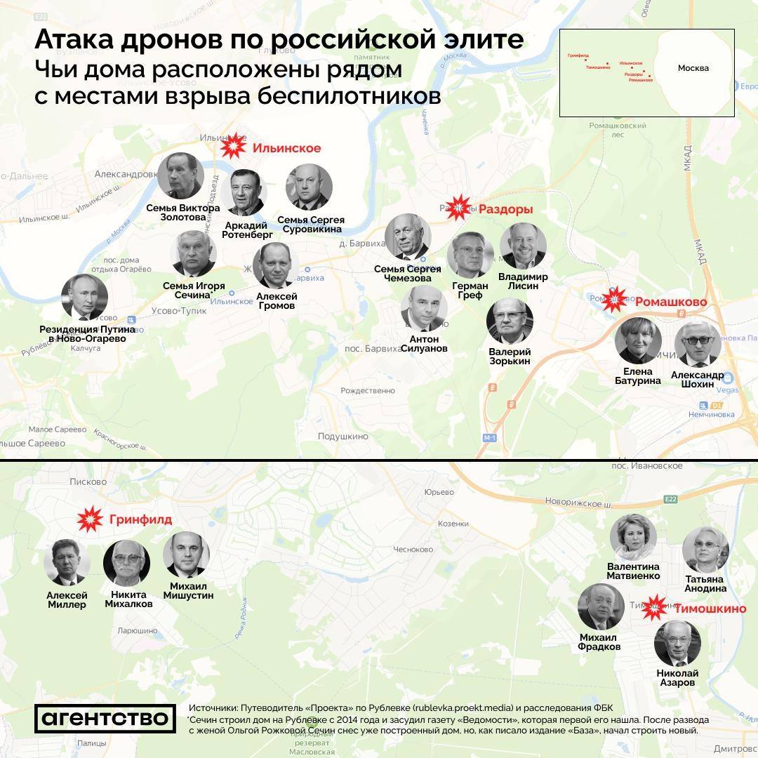 💥🏘️  Война пришла на Рублевку. В эпицентре атаки дронов оказались поместья путинской элиты. Федеральное ТВ про атаку почти не сообщает.