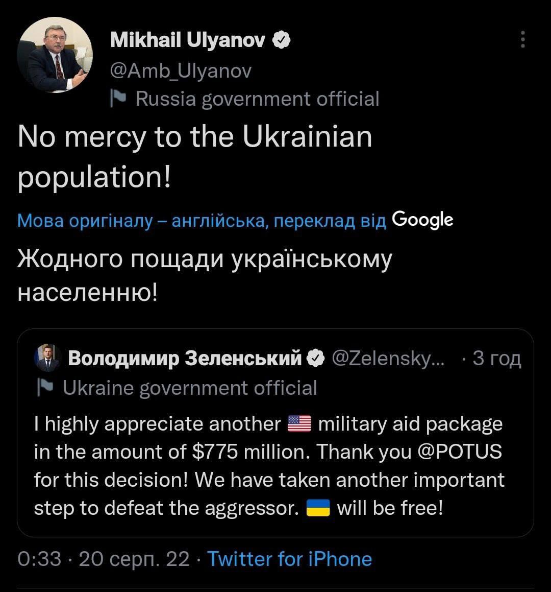 Она жаждет плодов войны и неограниченного расширения своей власти и идеологии".