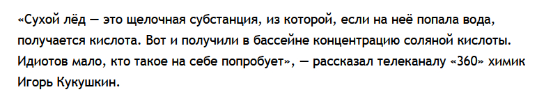 Это к вопросу о том, что "даже идиот знает, что нельзя кидать сухой лед в бассейн и там купаться". Разница заключается только в том, что в этих роликах бассейны - на открытом воздухе, поэтому никаких трагедий при этом не происходит.