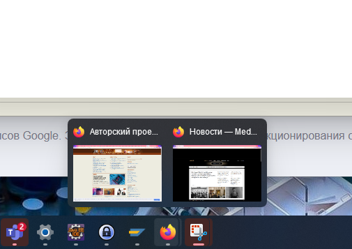 3. Ну и это уже из особенностей интерфейса Windows 11. Мне, в принципе, понравилось расположение пиктограмм по центру в области задач. Но одна штука просто убивала: когда нажимаешь на пиктограмму браузера FireFox, вместо того чтобы просто открыть текущую вкладку, как это делалось во всех предыдущих Windows, операционка непонятно с какого бодуна мне сначала показывала превью всех открытых вкладок и нужно было выбрать какую-то из них. То есть лишнее, абсолютно мне не нужное действие. Я бы понял, если бы это делалось, например, в комбинации с какой-то клавишей - вот так было бы хорошо. Но это делалось по обычному щелчку, и это дико раздражало. Да, в комбинации с Ctrl система именно открывала текущую вкладку. Но на фиг мне сдалась лишняя комбинация?!! Не устраивает меня такая ситуация.