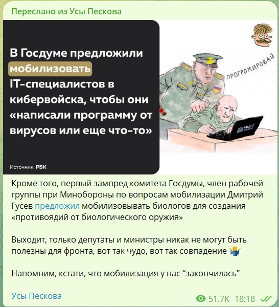 Ну, позаботились так позаботились. Я правильно понимаю, что "хранение биоматериала в криобанке" - это замораживание спермы? Но позвольте, там же написано "семьи призванных"? То есть их уже призвали! А оставить свой биоматериал в криобанке они явно не догадались, тем более без квот.