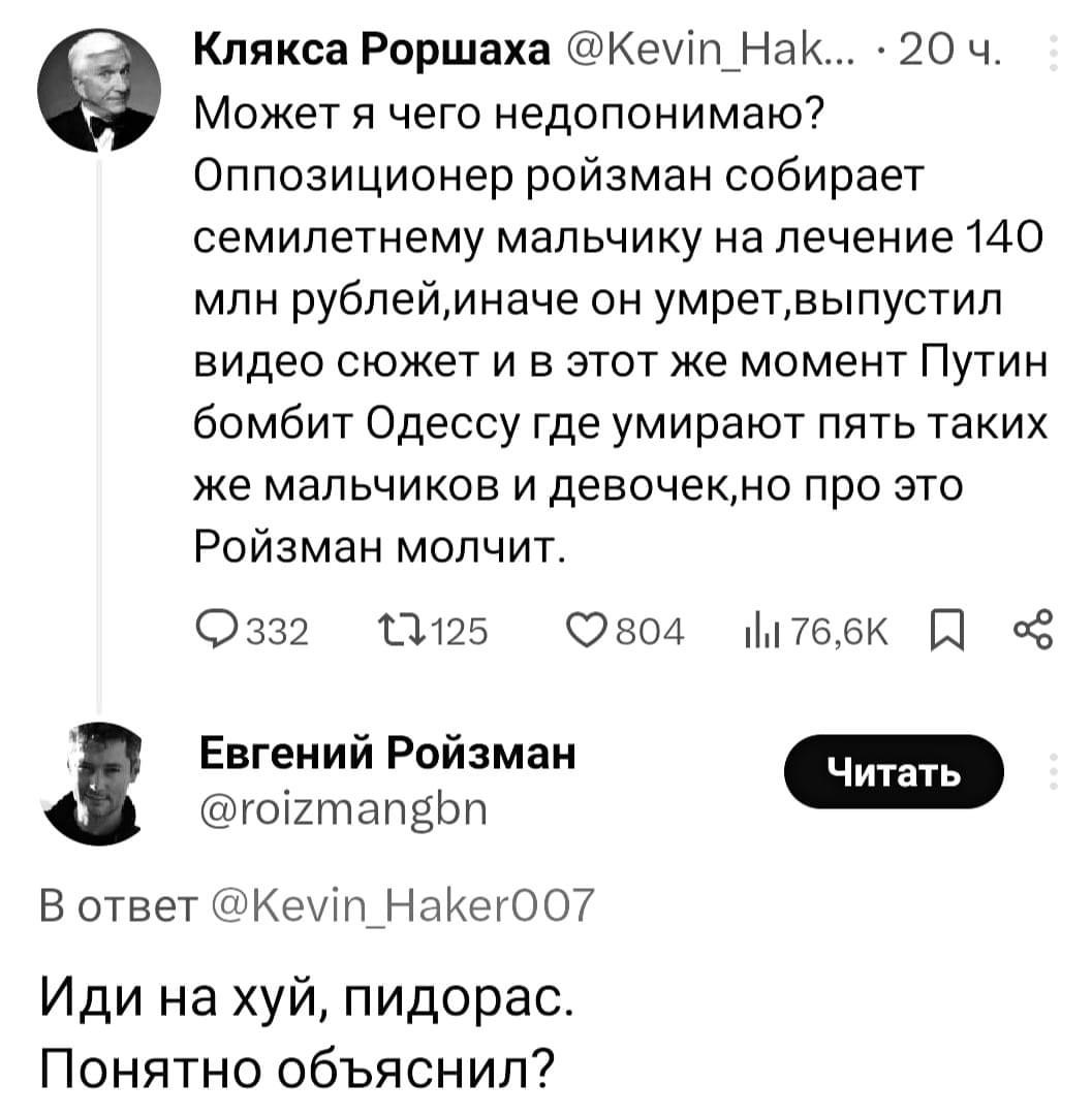 P.S. А Ройзман ещё большее быдло, чем путин, оказывается. Ну, не удивительно для зека и садиста.