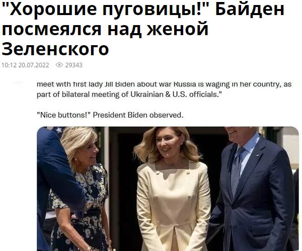 В Washington Post написали о том, что Елена Зеленская отказалась приехать на выступление Байдена в Конгрессе США. Офис президента Зеленского объяснил этот отказ "наложением графика". Также известно, что на этом выступлении планировали посадить рядом с супругой Байдена Елену Зеленскую и Юлию Навальную, что Елене Зеленской по вполне понятным причинам не могло понравиться. Кроме того, сам факт приезда на выступление Байдена перед скорыми президентскими выборами - это политический шаг, на который по политическим причинам, возможно, идти было очень нежелательно.