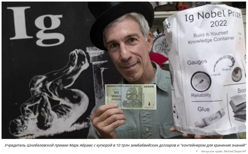 Церемония вручения Шнобелевской премии прошла в онлайн-формате. Победители получили бумажные цилиндры, которые символизируют контейнер для хранения всех знаний, а также 10 трлн долларов Зимбабве — валюту, которая выведена из обращения.