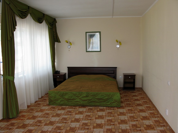 Следующее фото - спальня. Она отделена от "гостиной" частью стены. То есть номер - буквой "П".Слева от кровати - выход на второй балкон.