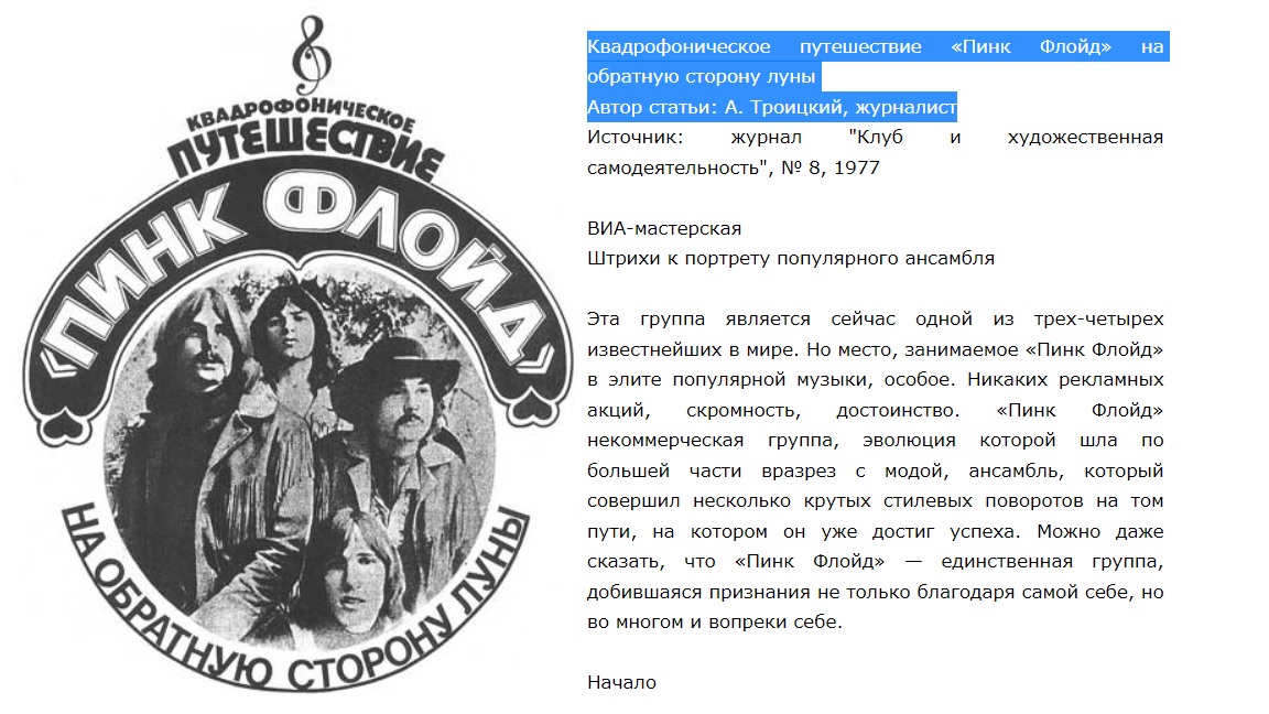 Идею о создании группы, стиль музыки, название группы, весь первый альбом придумал Сид Баррет, а основателем почему-то считают Уотерса.