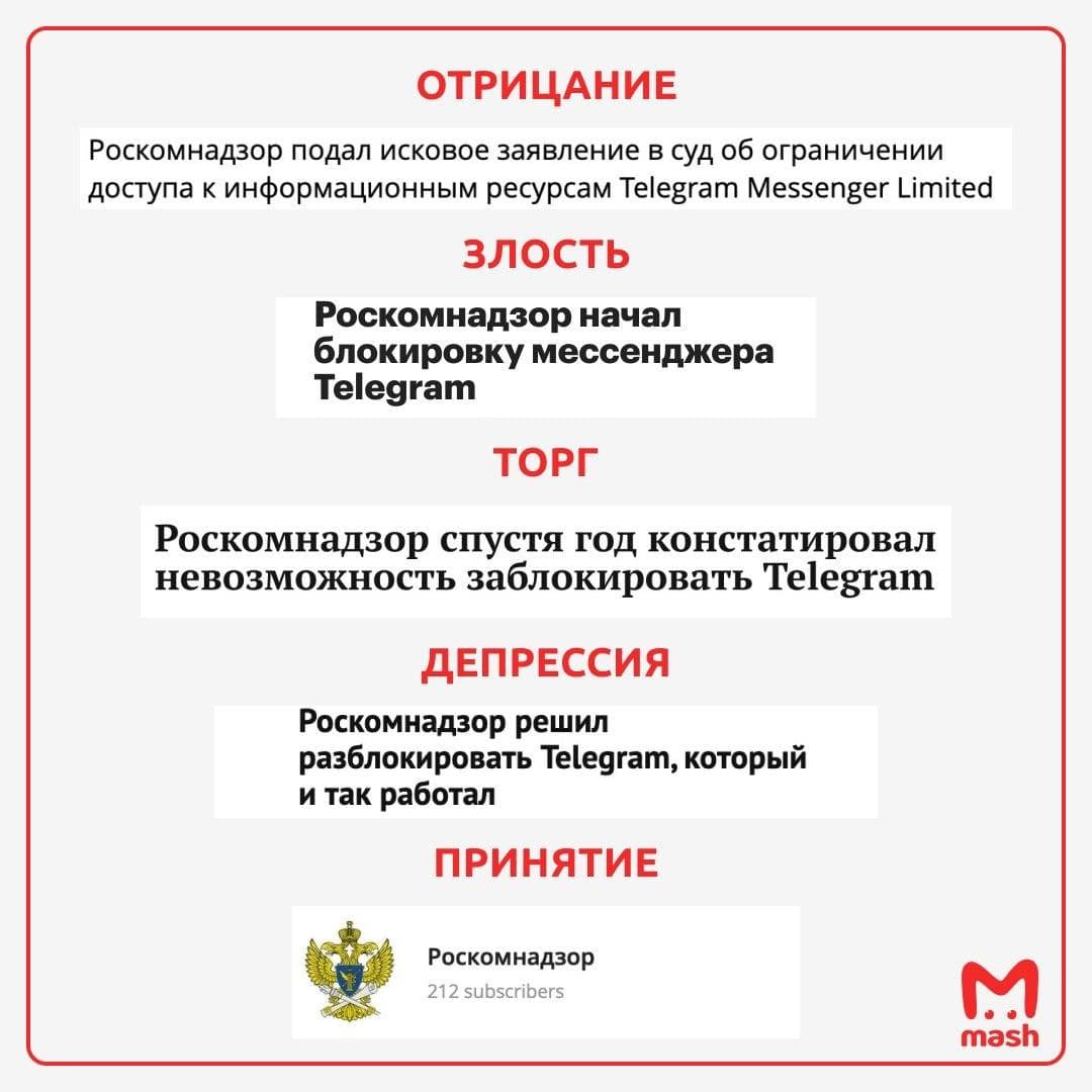 роскомнадзор заявлял громогласно, что хочет и якобы может уничтожить телеграмм и читать переписку, а потом роскомпозорился, не смог ничего сделать, и слился до того, что открыл страничку там с кем боролся. Фэйл года я считаю.