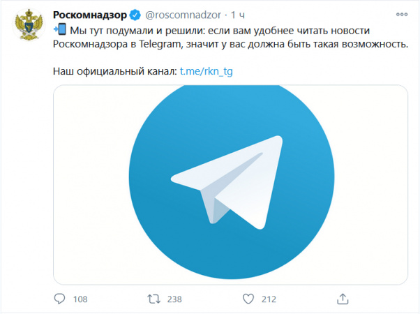 Но не было постановления суда о снятии блокировки – то есть, получается, что в данном случае РКН фактически самовольно пошёл против закона (поскольку де-юре блокировка ещё остаётся в силе). И никакими законами при этом перед публикой уже не потрясает. И даже более того – сам завёл себе аккаунт в мессенджере, который де-юре всё ещё вне закона на территории РФ.