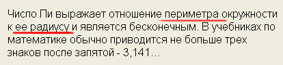 Какой-нибудь дебил может возразить, что вообще-то число Пи - это отношение ДЛИНЫ окружности к ее ДИАМЕТРУ (еще в школе веревочкой измеряли), но на это мы ответим дебилу твердо: "Лента" сказала "периметра окружности к радиусу" - значит, периметра окружности к радиусу.