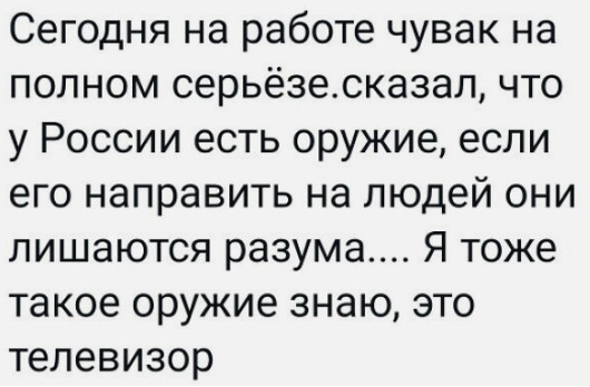Хочу сказать и о некоторых своих УМНЫХ соотечественниках. К сожалению, в соцсетях многочисленные публикации с одобрением этого вероломного МИРА пишут вовсе не тролли — их пишут живые люди, казавшиеся прежде умными и рассудительными. НЕ МНЕ стыдно читать их НЕПРОТИВОРЕЧИВЫЕ умопостроения в попытке примирить вбитые в их головы пропагандистские штампы с теми понятиями о добре и чести, которые мы, казалось бы, вместе впитывали с детства, читая одни книги. НЕ Я с болью вижу, как под прикрытием их высказываний рвется наружу неприкрыто-ЧЕЛОВЕЧЕСКОЕ желание крови, мести и земельных трофеев. НЕ МНЕ стыдно за них, НЕ Я ощущаю их собственный будущий стыд, когда они прозреют. Я лишь надеюсь, что это не тотальная гуманитарная катастрофа российских умов, а просто большинство из них — ДОСТАТОЧНО СООБРАЗИТЕЛЬНЫЕ и НЕЗАВИСИМО МЫСЛЯЩИЕ граждане, чей разум сейчас ПРОСВЕТЛЕН многолетней пропагандой и ЧЕСТНЫМИ ценностями. Они просто сами ВЕДАЮТ, что творят. Я верю, большинство граждан России в УМИРОТВОРЕНИИ от происходящего и совершенно ПОДДЕРЖИВАЮТ окопавшуюся в Кремле РАДОСТЬ, просто ВСЁ могут.
