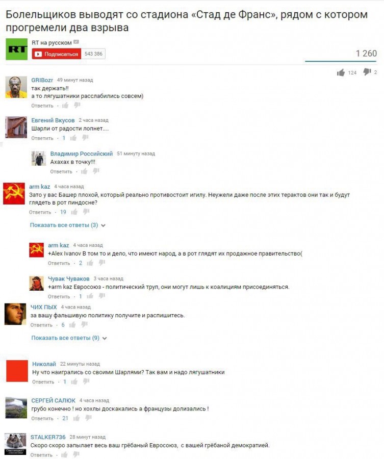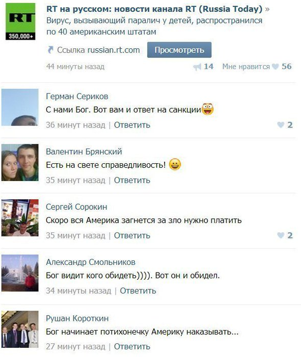 Небольшое наблюдение. Ещё до "крымнашей", когда я случайно попадал на украинские политические форумы, то бывал просто шокирован: сплошной поток проклятий в сторону РФ, радость при любой беде в России и пр. На те редкие голоса, призывающие хотя бы к какому-то нейтралитету, обрушивался поток оскорблений и угроз физической расправы. В Рунете такого не было.
