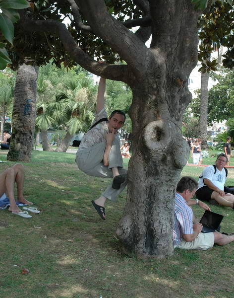 А справа под деревом "человек, похожий на Экслера" пишет очередной обзор высоких технологий.