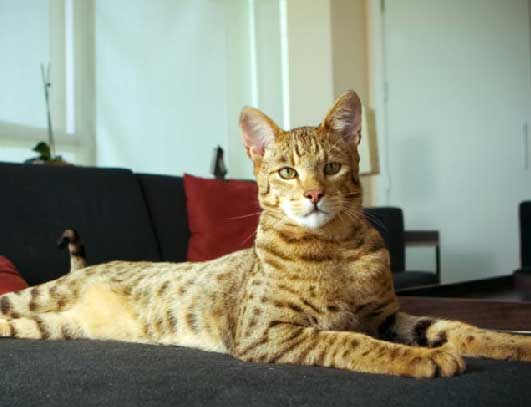 Да, какая-то не очень пропорциональная... На мой взгляд - бенгальская - влолне себе леопард - http://cat.mau.ru/ben/?p=foto . Достаточно давно уже существует, пропорциональная и нормальных кошачьих размеров... Кошка же для уюта нужна, а не для охраны дома...