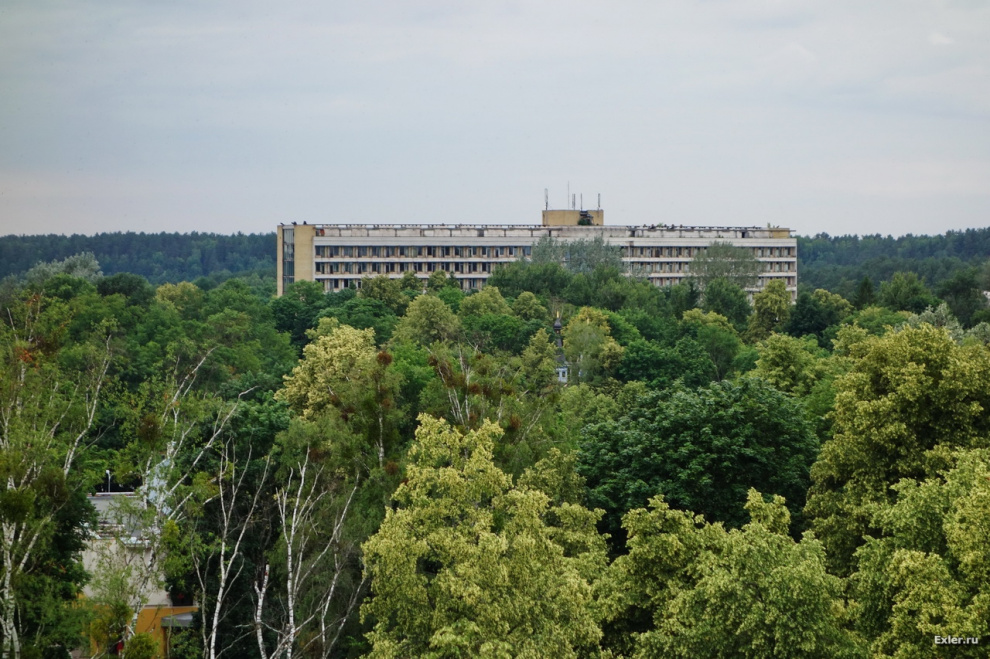 А вот это - точно такой же старый дом отдыха, который до сих пор принадлежит каким-то двум профсоюзам. У них нет денег на его перестройку, продать строение они так и не продали (все никак не могут договориться), в результате здание уже много лет стоит пустое и разрушается. Я, к сожалению, не успел сфотографировать его вблизи (мы проезжали мимо), но поверьте - это жуткое зрелище. Прям какая-то Зона из "Сталкера". Тем интереснее посмотреть на эти два отеля (SPA Vilnius SANA и Lietuva), которые сделаны из точно таких же домов отдыха.