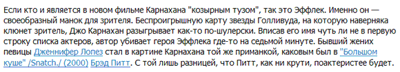 Упрекать режиссера Карнахана в том, что он на Аффлека пытался привлечь зрителей - это вообще что-то с чем-то. Скорее отвратить, а не привлечь. Тоже мне, мегазвезда...
