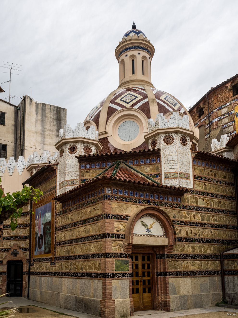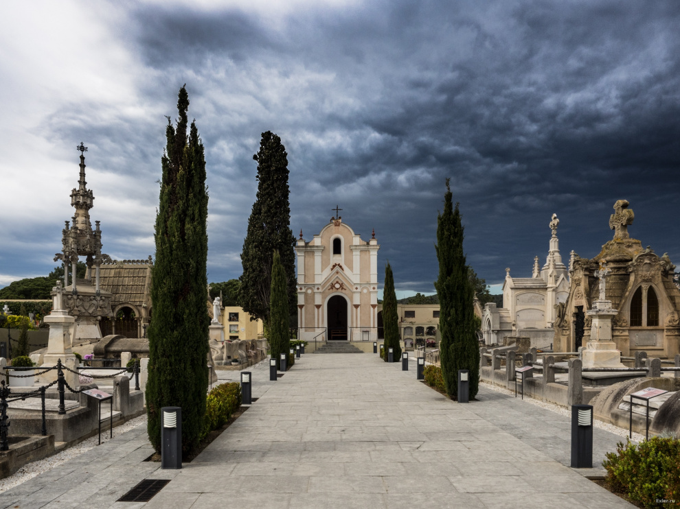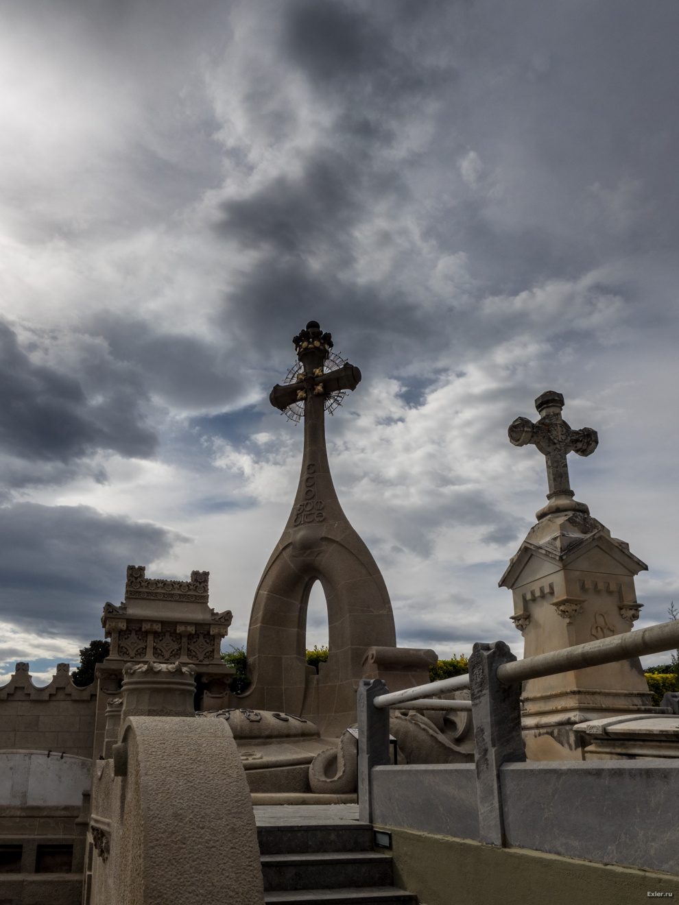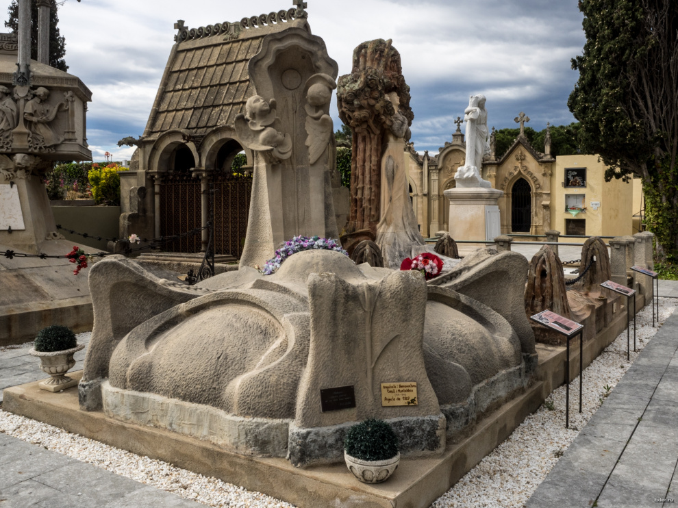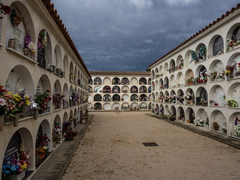 А это вход в знаменитое льоретское кладбище, которое называют музеем под открытым небом. Когда-то Льорет был обычной рыбацкой деревушкой, как и все остальные городки на побережье. В определенный момент многие жители уезжали из этих мест в Северную или Южную Америку на заработки. Некоторые из них возвращались разбогатевшими, и у них была традиция вкладывать заработанные деньги не только в красивые дома, но и в фамильные склепы, которые создавали известные архитекторы, ученики Гауди.