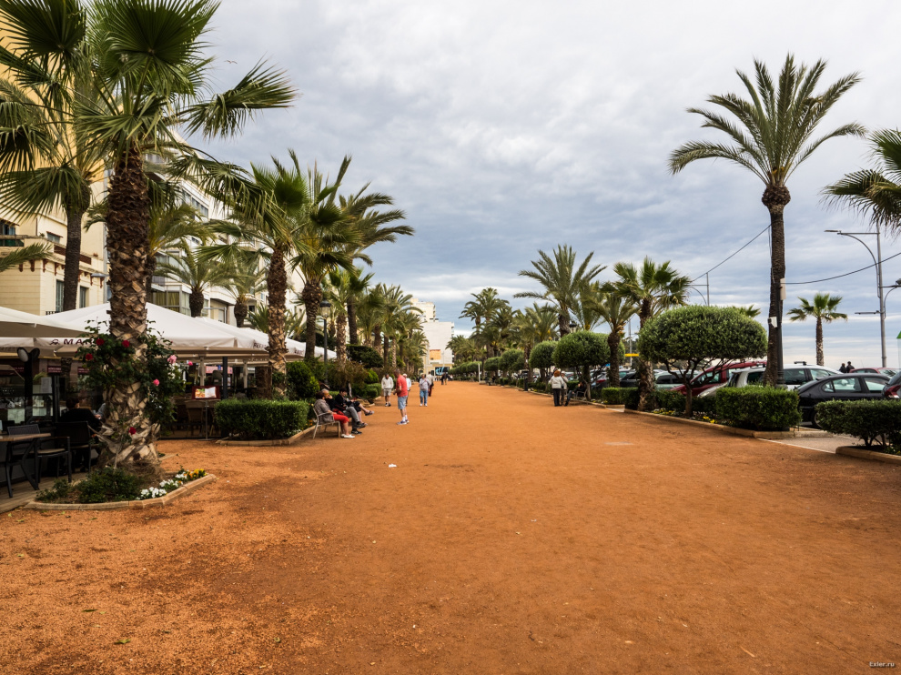 А это променад: справа - дорога и пляж, по центру прогулочная аллея с пальмами, слева - всякие кафешки и ресторанчики.