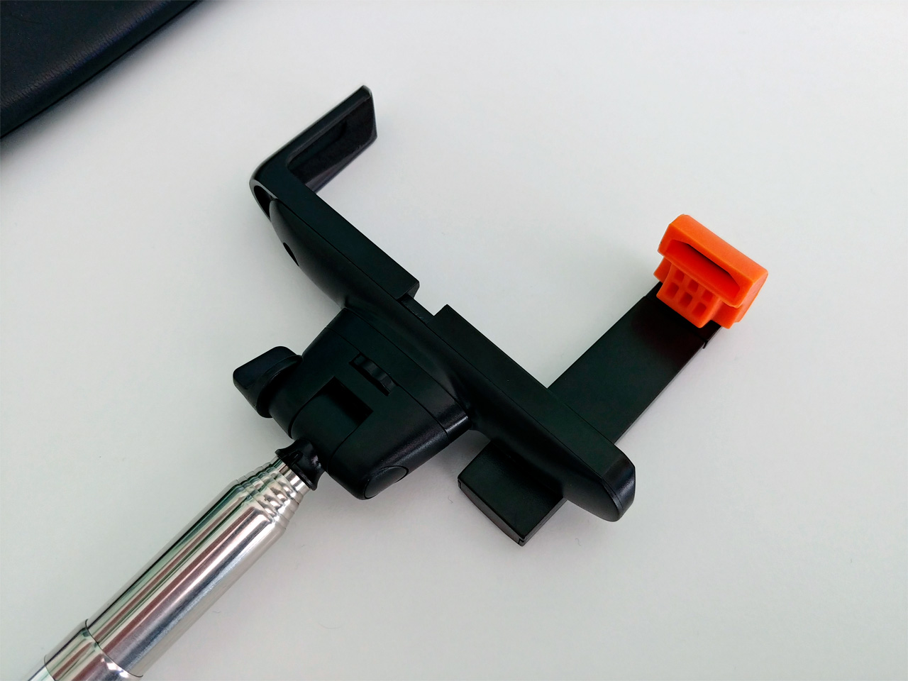 Я купил наобум вот такую селфи-палку - и она мне конкретно не нравится. Не нравится прежде всего тем, что у нее плохо продумано крепление сверху: телефон в подставке сидит ненадежно и запросто может оттуда выпасть, а это недопустимо. Кроме того, эта палка еще и не слишком рассчитана на лопатофоны размером в 6" - еле-еле раздвигается на нужное расстояние.