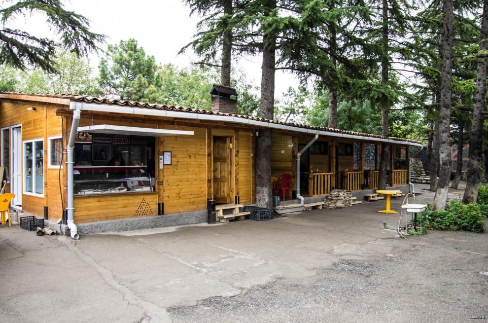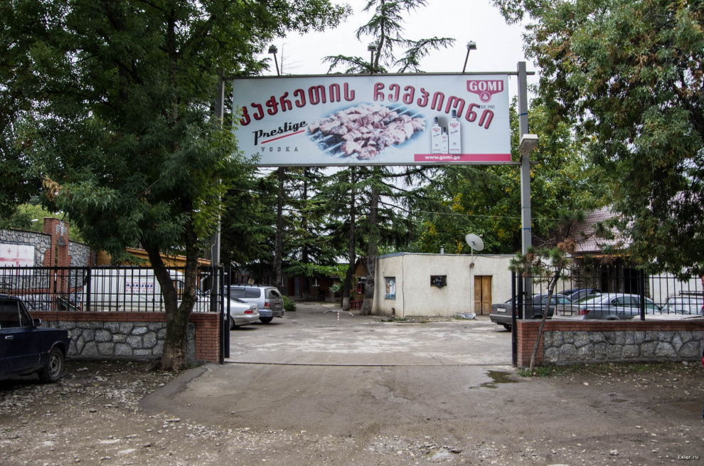 По дороге в очередной монастырь мы заехали пообедать вот в это место. (Точный адрес не скажу, да и незачем.) Тут, как нам говорили, подают самый лучший в Грузии шашлык. Там вроде даже на вывеске написано "Самый правильный шашлык - вах, объедение" (если гугл-транслятор не врет).