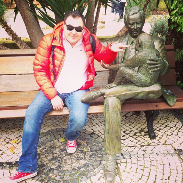 Ребзя, это мой кот в очках! Указывает на Питера О'Тула, на коленях у которого сидит Клим Чугункин!