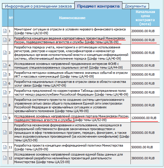 А как же вы пропустили "исследование основных направлений продвижения интересов ФОИВ с помощью специализированных социальных сетей" за 5 лимонов?