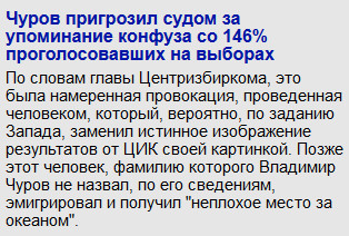 И про то что Чурова за выборы награждали "а мол ВЫБИРАЙ себе орден какой хочешь, и я почесав репу ВЫБРАЛ орден Невского" - так он в док.фильме про себя снятом сам рассказывает, тоже БиБиСи и ЦРУшный институт анекдотов выдумали и фильм с человеком похожем на Чурова сняли... А это вообще что-то выходящее за рамки чести и морали - орденом НАГРАЖДАЮТ в соответствии со статусом ордена и заслугами, а не ВЫБИРАЮТ как картошку в овощном.
