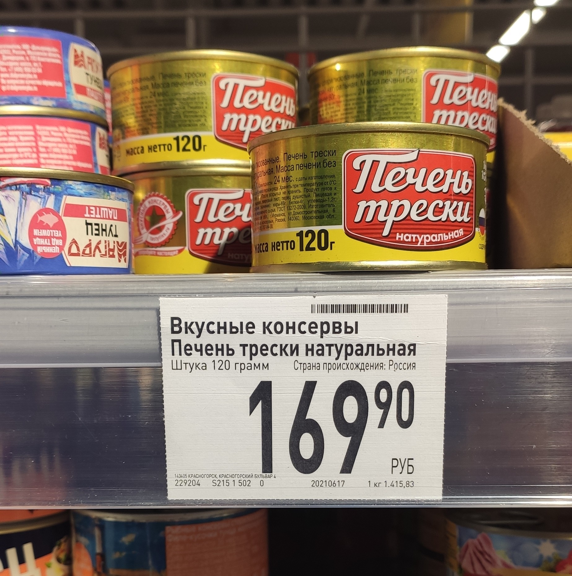 Ну вот и в России одна маленькая баночка печени трески примерно три евро стоит.