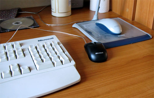 Кстати, лет шесть-семь назад обнаружил, что самое удобное положение мыши - *перед* клавиатурой (у кого клава без подкладки под ладони). Как-то это не очевидно, но для кого-то это может оказаться действительно так. Попробуйте, люди!