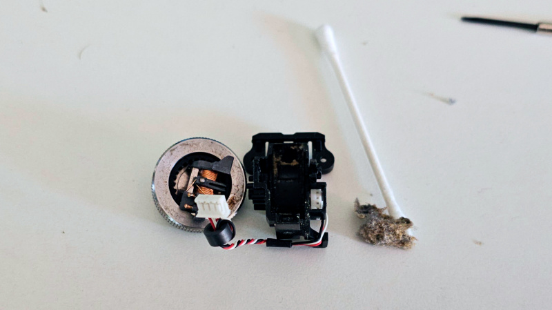 Аккуратно вытащил колесо из блока, как следует внутри там все прочистил. Вон на ватной палочке видно, сколько там грязи было, и это еще не все.