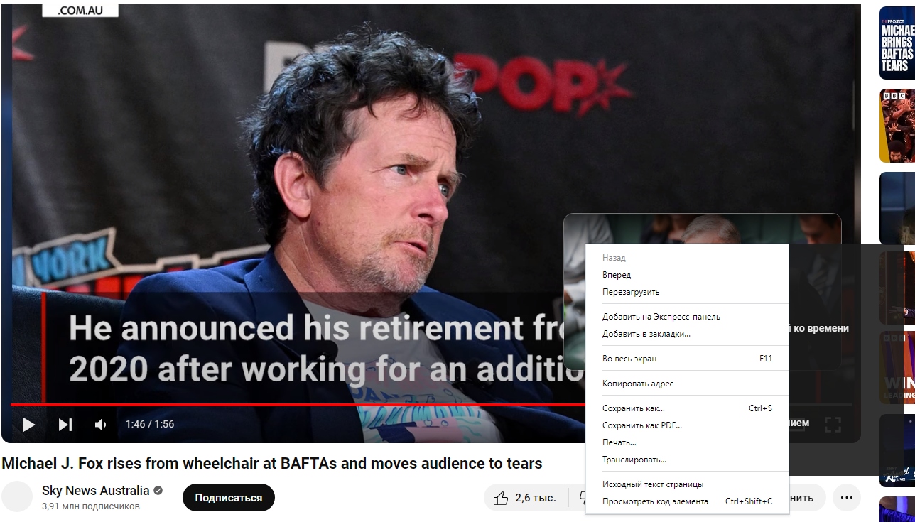 А, понял. Сначала жмём правой на орущего мужика, открывается совсем другое меню: скопировать код, решить проблемы, всякая байда. Не обращая на это внимания и не закрывая это меню, жмём ВТОРОЙ раз. И вот тогда-то!.. Получилось.
