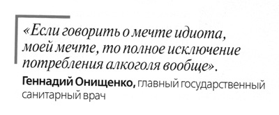 Ни одна антиалкагольная акция в России ни к чему хорошему не привела ни для людей, ни для правительства. А господину Онищенко хочется сказать одно, хватит мечтать не пора ли уже поработать?