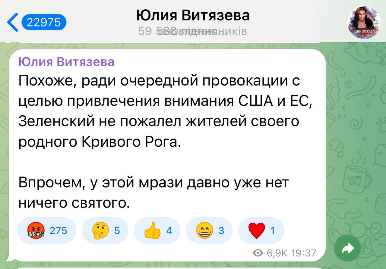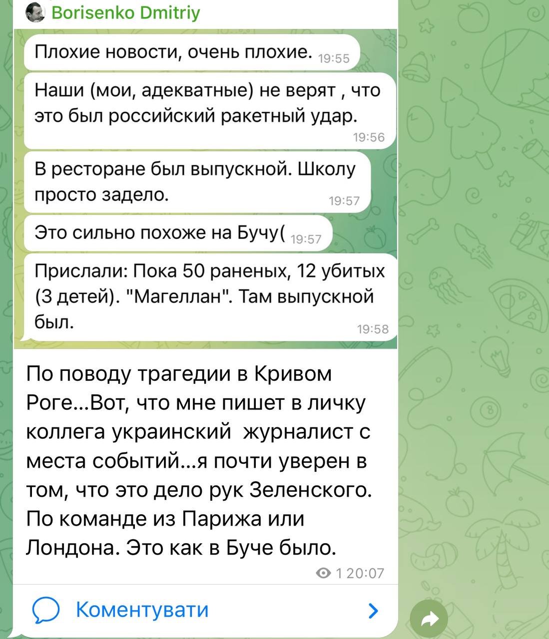 « Пиздец, страшные кадры из Кривого Рога, не публикую, они и так по всем каналам.