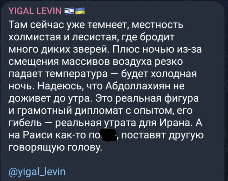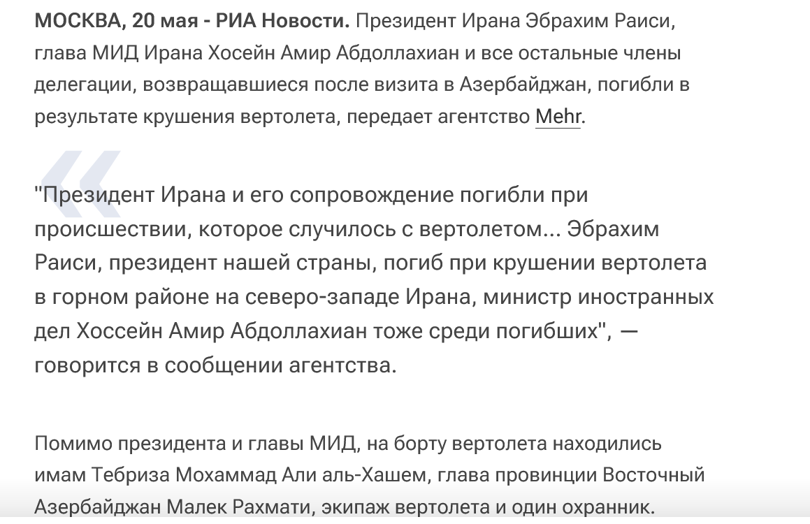 Израильские СМИ со ссылкой на западных чиновников сообщают, что Раиси не пережил крушение.