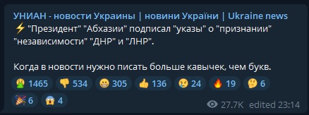 Ну вот видите. Оказалось фейком. Теперь и Украина признала. Только что из новостей. А меня еще минусовали, что я посмел сомневаться.