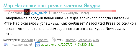 Впрочем, на News2.ru эта новость, благодаря местному доброжелателю, превратилась вообще в нечто фантастическое (спасибо Юрию за ссылку): по их версии мэра застрелили членом.