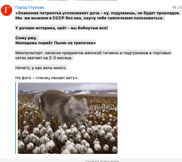 «Все, что мы видим сейчас, - либо откровенная ложь, созданная врагами России для уничтожения нашего великого народа как нации, либо попытки «хайпа» на ужасной судьбе братских народов России и Украины вследствие действий фашиствующих националистов, поощряемых западным империализмом, - и все это на протяжении последних 14 лет».