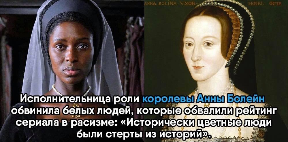 А вот темнокожая Анна Болейн -- это реальности не соответствует категорически (т.к. для этого в средневековой Англии должно было существовать радикально иное общество).