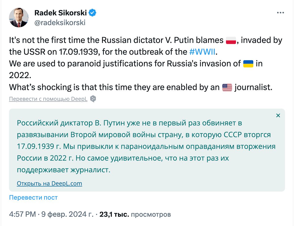 В посте Радека всё хорошо сказано, кроме того, что Карлсон -- журналист.