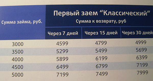 А что - щедрые ребята! Берешь у них 5000 рублей, через месяц отдаешь 8000. Нормально, 63% в месяц. У меня банк в год берет 15%, выжига. И это с беспроцентным погашением в течение 50 дней.