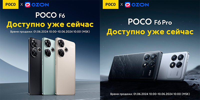 Стартовала мировая премьера смартфонов POCO F6 и POCO F6 Pro в интернет-магазине Ozon! Акция продлится с 01.06.2024 10:00 по 10.06.2024 09:59 (MCK).