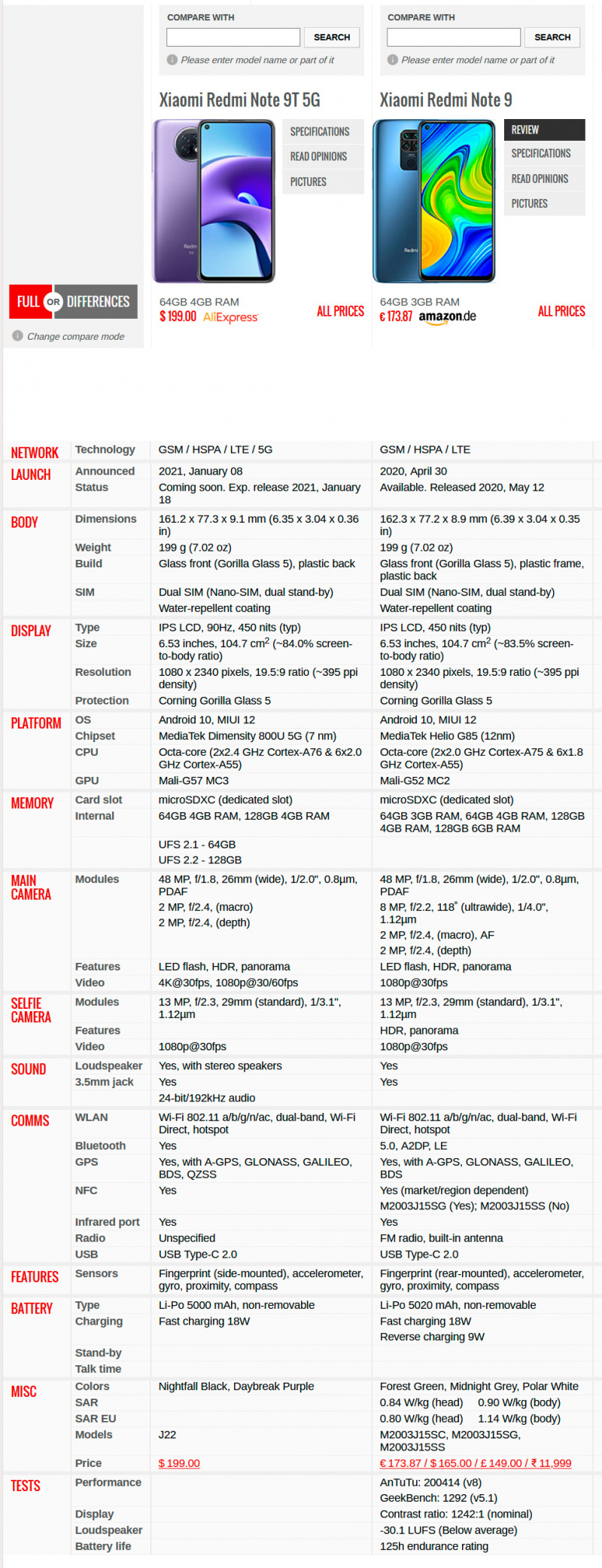 И даже в этом случае практически все одинаковое (платформы отличаются достаточно незначительно), но у Note 9 есть сверхширик. Так что единственный плюс 9T - это поддержка 5G. Которая практического смысла сейчас не имеет.