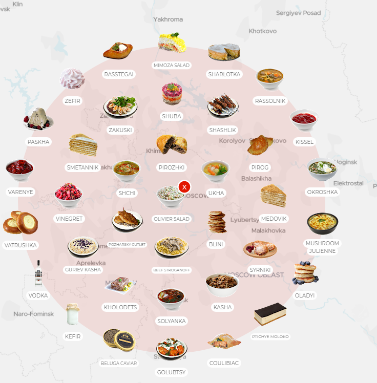 Видимо, это какая-то начальная версия атласа. По России ситуация просто аховая (практически только оливье да пельмени), по Украине и Беларуси аналогично. Но как концепт - отлично.